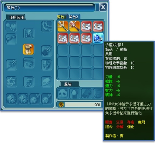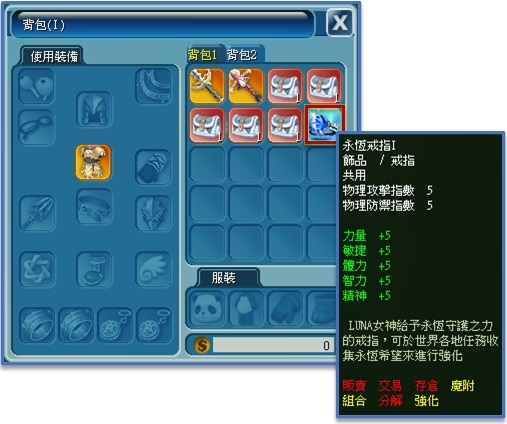 LUNA Infinite新創立的角色都會在背包中收到一枚【永恆戒指I】,