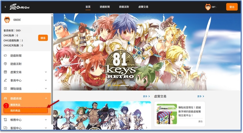 3.在OMG平台點選左手邊功能列>遊戲商城>我的商品。