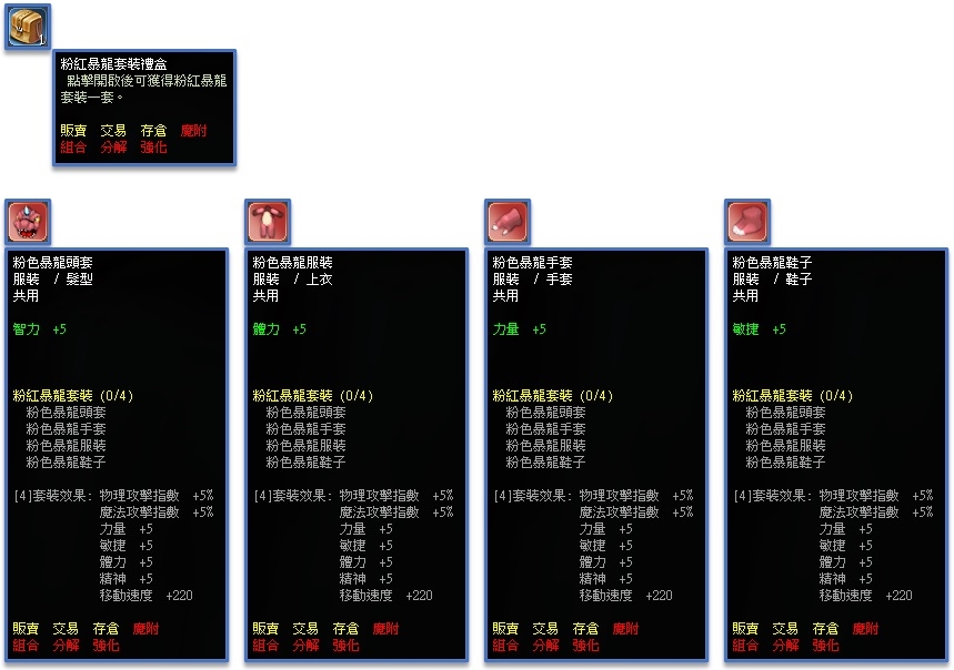 ◆ 聖龍傳說寶箱道具內容物為有機率獲得粉紅暴龍套裝禮盒,道具說明誤植預計於下次更新修正。