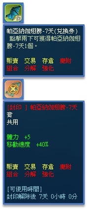 | 13 | 帕亞納伽翅膀-7天(兌換券) | 1 | 5.00% |