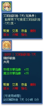 | 15 | 艾莉絲趴娃-7天(兌換券) | 1 | 5.00% |