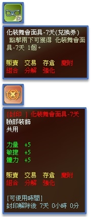 | 8 | 化裝舞會面具-7天(兌換券) | 1 | 4.00% |