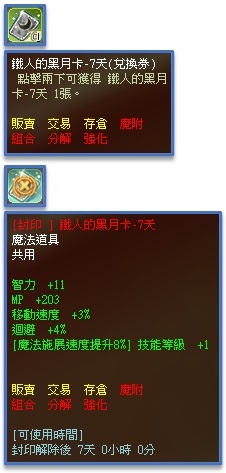 | 10 | 鐵人的黑月卡-7天(兌換券) | 1 | 1.00% |