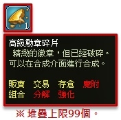 透過合成介面使用【高級勳章碎片*10】與遊戲幣,可合成獲得【絕對無力高級勳章-3日】。