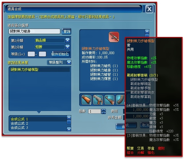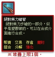透過合成介面使用【絕對無力火藥*999個】與遊戲幣1,000,000,可合成製作出【絕對無力彈匣】。