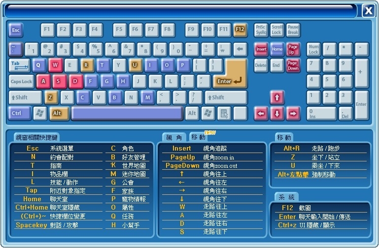 ※ 原本W、S、D開啟的項目變更為以下快捷鍵。
