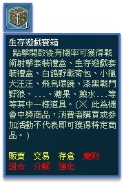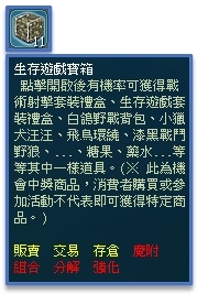 生存遊戲寶箱1個 - 購買後可獲得 生存遊戲寶箱1個。