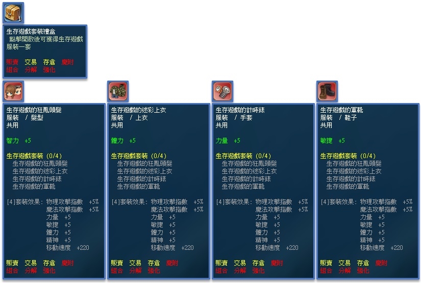 | 2 | 生存遊戲套裝禮盒 | 1 | 0.20% |