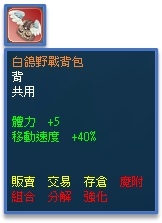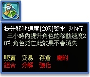 | 17 | 提升移動速度[20%]藥水-3小時 | 1~3 | 5.00% |