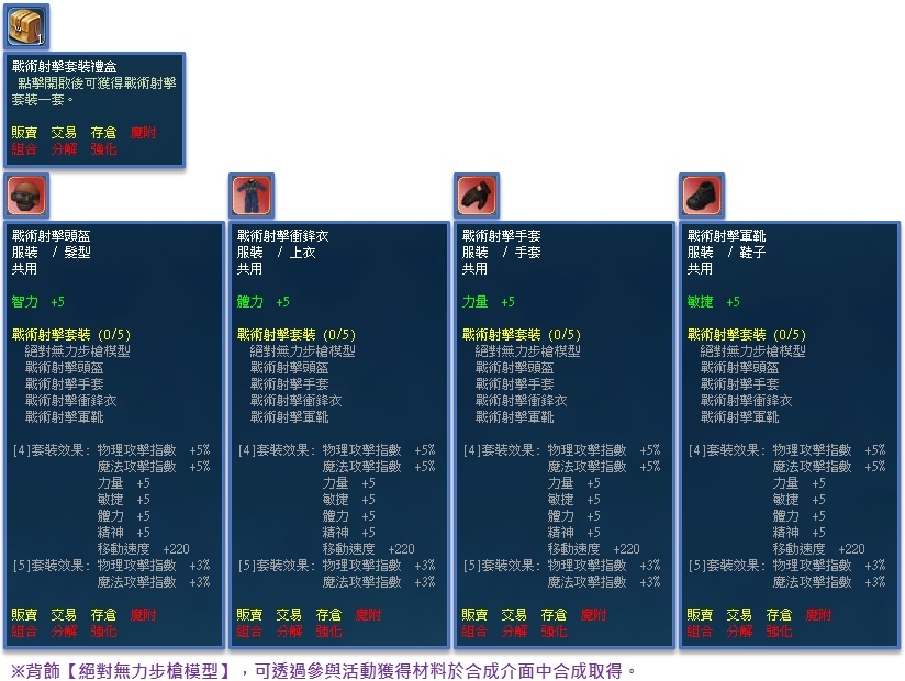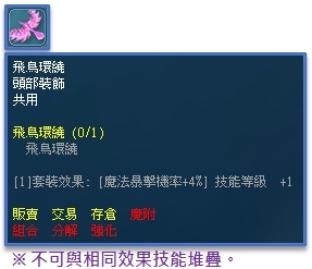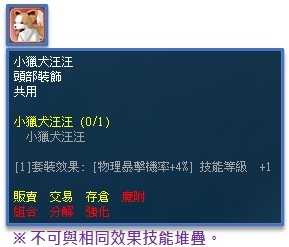 ※ 部分裝備能力獲得的技能屬性及數值相同時不能疊加,實際效果依遊戲設定內容為主。