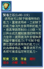 | 15 | 賢者之石(Lv80-119) | 1~2 | 4.00% |