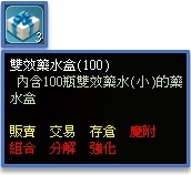 | 18 | 雙效藥水盒(100) | 1~3 | 5.00% |