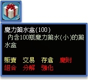 | 19 | 魔力藥水盒(100) | 1~3 | 5.00% |