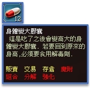 ▲ 身體變大膠囊: 1入,這是吃了之後會變高大的身體變大膠囊,若要回到原來的身高,必須要食用解毒劑。
