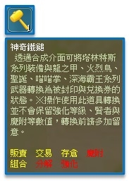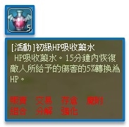 ▲ 幸運吸收鐵槌套組: 幸運符咒 3張、神奇鐵鎚 1支、[活動]初級HP吸收藥水5個、[活動]初級MP吸收藥水5個。