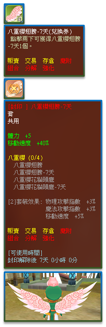 | 5 | 八重櫻翅膀-7天(兌換券) | 1 | 2.00% |