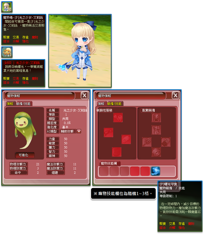※ 部分裝備能力獲得的技能屬性及數值相同時不能疊加,實際效果依遊戲設定內容為主。
