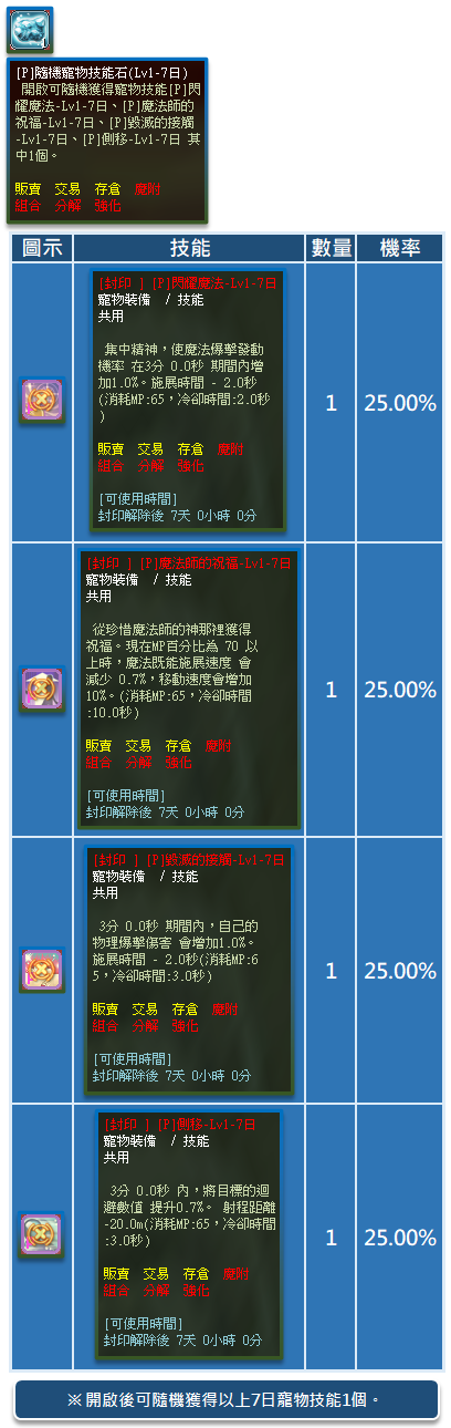 2、道具效果以遊戲內容為主,但道具使用效果有可能因遊戲版本更新異動,最終以遊戲更新異動內容為主。