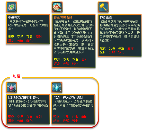 ※ [活動]初級吸收藥水皆為綁定,不可交易、不可販售、不可存倉。