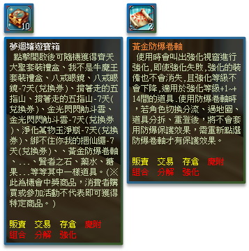 黃金夢迴嬉遊組合 - 購買後可獲得 夢迴嬉遊寶箱 10個+黃金防爆卷軸 2張。