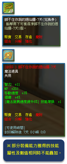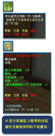 ※ 部分裝備能力獲得的技能屬性及數值相同時不能疊加,實際效果依遊戲設定內容為主。