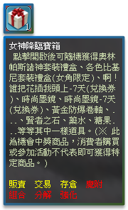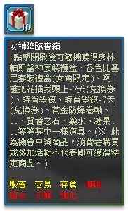 女神降臨寶箱內容: