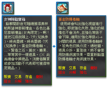 黃金女神降臨組合 - 購買後可獲得 女神降臨寶箱 10個+黃金防爆卷軸 2張。
